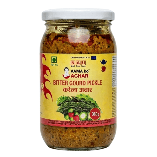 Bitter Gourd Pickle 380g by Aama Ko Achar is a traditional Nepali achar made from bitter gourd and authentic spices. Perfect as a side dish with rice, dal, roti, and Nepali meals.
