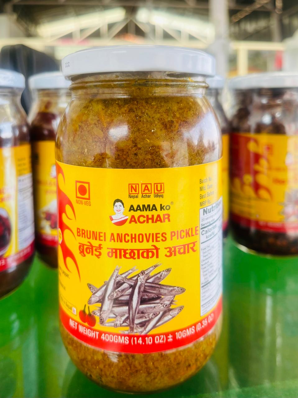 Aama Ko Brunei Maccha Ko Achar is a rich and flavorful fish pickle made for those who truly enjoy bold, authentic tastes. Prepared using carefully selected fish pieces blended with traditional spices, this achar delivers a deep, savory flavor with just the right balance of heat and tanginess.