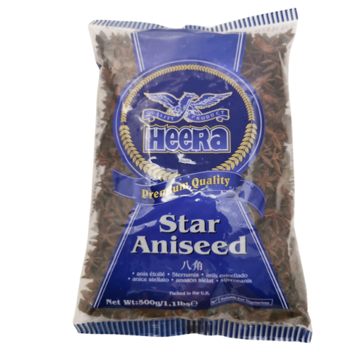 Heera Star Aniseed is a premium whole spice, known for its distinctive star-shaped pods and warm, aromatic flavor. Its sweet, licorice-like taste makes it an essential ingredient in both traditional Indian and global cuisines, perfect for adding depth to curries, biryanis, sauces, and desserts.