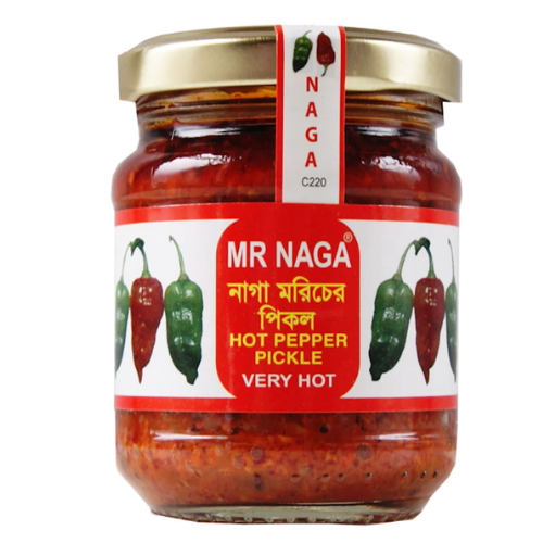 MR Naga Hot Pepper Pickle (Extra Hot) is a bold and fiery condiment made for those who truly enjoy intense heat and strong flavour. Prepared using Naga chilies known for their powerful spice level, this pickle delivers a deep, smoky heat that builds gradually and leaves a lasting kick on the palate.