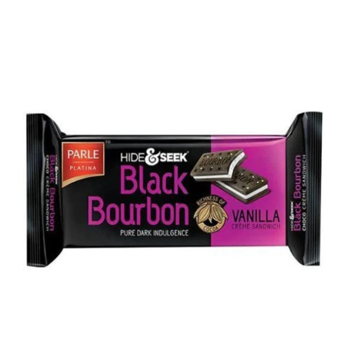 Parle Hide & Seek Black Bourbon Vanilla Biscuit is a delicious treat that combines rich chocolate biscuits with a smooth, creamy vanilla filling. The contrast between the dark cocoa flavour and the sweet vanilla cream creates a perfectly balanced taste that feels indulgent yet comforting with every bite.