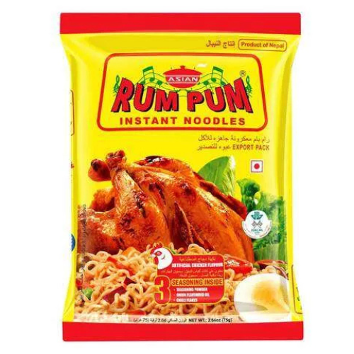 RumPum Chicken Noodles are a simple, flavorful instant meal designed for quick cooking and everyday comfort. The noodles are soft yet slightly springy, soaking up a savory chicken-style seasoning that gives a warm, familiar taste. The flavour is mild and balanced, making it enjoyable for people who prefer tasty noodles without overwhelming spice.
